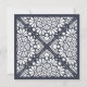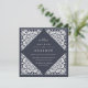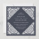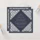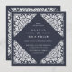Les élégantes invitations à un mariage vintage dans le bleu de minuit sont ornées d'une bordure décorative ornée de détails qui évoque l'aspect de papier coupé dans un style picado papel. forme carré.