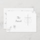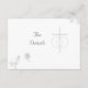 Design avant dispose d'en-tête personnalisable affiché à côté de l'image d'une croix avec anneaux de mariage joints au centre. Les coins de droite et de gauche inférieurs présentent l'image des roseleaves. Le coin inférieur gauche représente également l'image de deux colombes, l'une en vol vers l'autre. Reverse contient les informations relatives à la réception et à l'hébergement ainsi que les informations sur le registre des mariages. Si vous préférez ne pas inclure les informations de votre registre mariage, laissez simplement cette zone vide ou remplacez-la par d'autres textes. A vous de choisir ! Conçu pour coordonner avec la "Suite Mariage catholique traditionnelle de l'unité nuptiale".