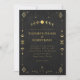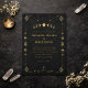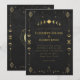Cette invitation de mariage noir et or Celestial Gothic présente un design élégant inspiré de l'astrologie avec des phases lunaires lumineuses, des détails géométriques de style tarot et des accents dorés antiques raffinés sur un fond de charbon profond.