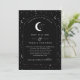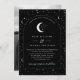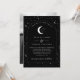 Une lune céleste et une faire-part de mariage à thème étoile avec un arrière - plan noir et un texte blanc avec des éléments. Vous pouvez également ajouter votre propre photo au dos. Customisez la couleur de l'étoile motif, arrière - plan, remplissage d'arc et élément lune!