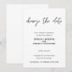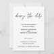 Carte de changement de date de mariage élégante et minimaliste en noir et blanc, écrite à la main.