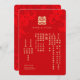 Faire-part de mariage chinois traditionnel en chinois avec double symbole de bonheur. Le format d'écriture est traditionnel et formel, qui comprend les deux parents/officiant. Cette invitation est écrite en chinois traditionnel. Ce style de police ne fonctionne que pour le chinois traditionnel. Si vous souhaitez utiliser le chinois simplifié, vous devrez peut-être modifier la police. Si vous souhaitez modifier davantage la mise en page ou supprimer certaines informations, vous pouvez le faire en cliquant sur "Modifier la conception".