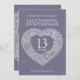 Faire-part d'anniversaire de mariage 13ème coeur en dentelle. Jolies invitations d'anniversaire de mariage en dentelle avec effet de bordure de coeur imprimé pour le treizième anniversaire de mariage en dentelle. Personnalisez avec vos propres détails de mariage en dentelle. Le 13ème anniversaire est traditionnellement associé à la dentelle et le coeur symbolise l'amour. D'autres produits assortis et anniversaires disponibles. Graphiques et conception originaux par Sarah Trett pour www.mylittleeden.com