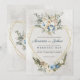 Faire-part de mariage cœur géométrique or élégant | Invitation de mariage florale botanique bleue et crème | Carte de mariage de jardin romantique