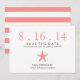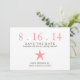 Élégantes annonces de sauvegarde de date idéales pour un mariage estival ou tropical, avec une magnifique illustration d'une étoile de mer, disponibles en de nombreuses variations de couleurs. Visitez notre boutique pour plus d'options de couleurs et de produits assortis.