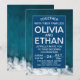 Cette invitation marine moderne bleu est parfaite pour une croisière ou un fiançailles sur la plage, mariage après la fête, la retraite, la remise des diplômes ou tout événement heureux. Le design simple présente un paysage marin magnifique, des vagues, des animaux de mer et des récifs colorés.