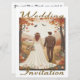 Faire-part de mariage avec le couple montré dans le pays à l'automne - La campagne à l'automne avec un couple à travers les bois. Vous pouvez modifier le verso de la carte pour obtenir des informations mariages pertinentes à la cérémonie ou au schéma de couleurs ou pour vous rendre au lieu. L'écriture est dans Old Gold