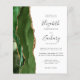 Le bord gauche de cette élégante faire-part de mariage moderne est orné d'une bordure en aquarelle vert de chasseur, recouverte d'une parties scintillant en faux or. Le texte personnalisable combine écriture manuscrite, copperplate et polices italiques en gris fusain sur un arrière - plan blanc. L'envers est assorti d'un design d'agate vert et or.
