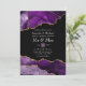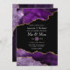 Faire-part de mariage en pierre d'agate de parties scintillant violet et faux or aux accents de noir personnalisable selon vos spécificités d'événement.