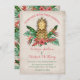 Faire-part de mariage Tropical Golden Pineapple avec ananas FAUX parties scintillant or, fleurs d'hibiscus, frondes d'oiseaux ou paradis et de palmiers sur un arrière - plan de lin antique. Besoin d'aide, contactez-moi à l'adresse tkatz@me.com Fronds and flower de Wireman, ananas de McBooboos