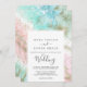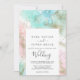 Cette carte de faire-part de mariage d'aquarelle d'été abstraite est parfaite pour un mariage moderne. L'élégant design unique est composé de bleu clair, vert menthe, rose vif et violet pastel avec des éclats de parties scintillant dorée, créant une atmosphère de plage fantasque.