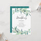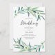 Superbe aquarelle verte Eucalyptus feuilles et couronne de fleurs décorent cette invitation de mariage simple et élégante. La page arrière présente un joli motif de feuilles en chute. Convient à un beau mariage de jardin extérieur au printemps ou en été ou même un mariage australien. Objets correspondants également disponibles.