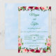 Donnez le ton de votre fête inoubliable avec ce faire-part de mariage d'aquarelle romantique. Un arrière - plan bleu ciel apaisant crée une toile rêveuse pour les fleurs rouges, rousses et blanches. Une végétation luxuriante magnifiquement encadrée par une douce bordure beige champagne. Associé à une typographie moderne sauge-gris, ce design allie une élégance intemporelle à une atmosphère fraîche et naturelle. Parfait pour une cérémonie de jardin, une célébration en plein air, un chic rustique ou un mariage d'inspiration boho.