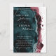 Superbe invitation à l'aquarelle turquoise et bordeaux accentuée d'un cadre géométrique argenté. Cet élégant invitation de mariage avec calligraphie manuscrite saura séduire vos invités !