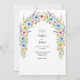 Beau arrière - plan de carte de faire-part de mariage avec une toile de fond blanche propre et une bordure en arc fleur sauvage aquarelle dans les tons pastel bleu, violet, rose, jaune et orange. Parfait pour imprimer sur demande papier à papier mariage.