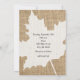 Faire-part de mariage d'automne rustique en toile de jute avec feuille d'érable. Personnalisez l'avant et l'arrière pour n'importe quel événement.
