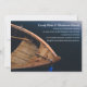 Ce paisible faire-part de mariage dispose d'un barque en bois sur une mer bleue calme. Idéal pour les couples qui aiment la navigation de plaisance, la voile ou la pêche.