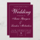 Cette belle faire-part de mariage présente un arrière - plan bordeaux/violet accentué d'élégantes polices blanches. Cette invitation peut être customisée selon vos besoins. Vous pouvez également commander une copie pour vous assurer que la conception est adaptée à vos besoins avant de commander un grand ensemble.