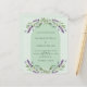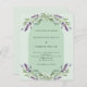 Un arrière - plan vert sage décoré de fleurs de lavande violette, de verdure d'eucalyptus et d'un cadre en arc de cercle. Personnalisez et vos noms et détails. 1 feuille = 1 invite imprimé bord à bord.