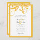 Cette faire-part de mariage chic et classe est ornée d'un élégant tourbillon jaune et d'une tête de lit contre un arrière - plan blanc. Un texte entièrement personnalisable vous permet de customiser pour n'importe quelle occasion des mariages aux douches nuptiales et wedding showers ! RSVP correspondant disponible dans ma boutique!