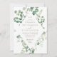 Un design mariage verdoyant avec un cadre feuillage avec du texte au milieu et de beaux feuilles d'eucalyptus verts, Vous pouvez changer le libellé, la taille du texte, la couleur et la police sur cette invitation de mariage.