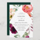 Belle aquarelle bohème cadre en losange fleuri avec coloré vert, pêche, violet et rose, feuillage et fleurs, faire-part de mariage. Le dos de la carte présente une couleur vert émeraude chic.