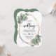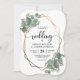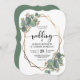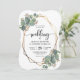 Il s'agit d'une belle faire-part de mariage avec eucalyptus et de conception géométrique dorée. Un arrière - plan assorti avec un motif feuille d'eucalyptus est inclus.