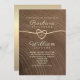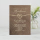 Simple, élégant, minimaliste faire-part de mariage en bois rustique avec coeur de corde en faux or et script de calligraphie moderne.