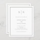 Ces invitations de mariage tout-en-un élégantes, modernes et économiques sont imprimées sur une feuille de papier. Elles présentent un design de texte minimaliste blanc et vert sage simple, avec un cadre classique à la bordure. Ajoutez vos initiales ou votre monogramme pour les rendre complètement vôtres. Le verso de l'invitation permet d'ajouter des détails sur les invités, ainsi qu'un code QR scannable pour que les invités puissent RSVP en ligne sur votre site mariage.
