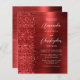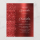 Le bord gauche de cette élégante faire-part de mariage moderne présente une bordure en faux parties scintillant rouge. Le texte personnalisable combine écriture manuscrite blanche, copperplate et polices italiques sur un arrière - plan métallique en faux rouge brossé. L'envers offre de l'espace pour les détails mariages sur un arrière - plan en métal brossé rouge, ainsi qu'un code QR que les clients peuvent scanner pour visiter votre site Web et RSVP, qui économise le coût d'impression et d'envoi de cartes RSVP séparées.