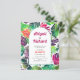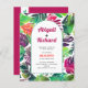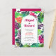 BUDGET Maximaliste coloré feuilles tropicaux et arche faire-part de mariage avec code QR. Plongez dans un monde rempli de couleurs vives et d'énergie tropicale avec notre faire-part de mariage abordable. Idéale pour les amateurs de design audacieux, cette invitation présente un bel éventail de feuilles tropicaux dans les tons vert, orange, violet et rose magenta. La fonction de démarcation est l'arc qui entoure votre texte personnalisé dans une police frappante, en attirant l'oeil dedans. Retournez-le pour trouver les initiales du couple sur un fond magenta dynamique et un code QR est inclus pour RSVP en ligne pratique.