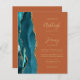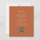 Économisez le coût d'impression et d'envoi de cartes RSVP séparées avec cet élégant faire-part de mariage tout-en-un moderne. Le bord gauche présente une bordure d'aquarelle bleue turquoise, recouverte d'une fausse parties scintillant dorée. Le texte personnalisable combine écriture manuscrite dorée, cuivre et polices italiques sur un arrière - plan orange brûlé ou rouille. L'envers offre de l'espace pour les détails mariages sur un arrière - plan orange brûlé solide, ainsi qu'un code QR que les invités peuvent scanner pour visiter votre site Web et RSVP.