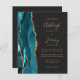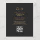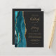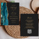 Économisez le coût d'impression et d'envoi de cartes RSVP séparées avec cet élégant faire-part de mariage tout-en-un moderne. Le bord gauche présente une bordure d'aquarelle bleue turquoise, recouverte d'une fausse parties scintillant dorée. Le texte personnalisable combine écriture manuscrite dorée, cuivre et polices italiques sur un arrière - plan noir ardoise. L'envers offre de l'espace pour les détails mariages sur un arrière - plan noir en ardoise solide, ainsi qu'un code QR que les invités peuvent scanner pour visiter votre site Web et RSVP.
