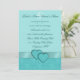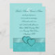 Un ruban de turquoise de satin de faux trace entre un beau ton sur le motif de damassé de turquoise de ton et une lumière solide - bleu - verdissez sur ce faire-part de mariage romantique. Deux coeurs d'amour dans la même damassé et équilibrés dans l'obscurité - bleu - verdissent l'accent de dentelle le ruban. Tout le texte personnalisable peut facilement être changé pour adapter à vos propres besoins.