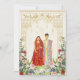 Une belle illustration numérique sans visage d'un couple indien qui se marie avec des teintes vives de rouge et d'or et des fleurs élégantes à la frontière, inclut la personnalisation.