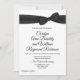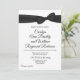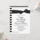 Faire-part de mariage élégante en blanc, avec des graphiques d'un tuxedo noir comme cravate arc, le long du sommet. Le dos est fait dans un motif horizontal rayé noir et blanc. Une combinaison de script et de polices régulières donne un look moderne et élégant. Personnalisez tous les champs de texte personnalisés pour votre mariage. Des produits correspondants sont disponibles.