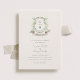 Elégante et rustique aquarelle peinte à la main par Shelby Allison avec un bouclier de style crête de famille et monogramme entouré de détails complexes sur les fleurs et les feuilles.