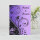 Notre élégant Faire-part de mariage de défilement de fleurs violettes peut être customisé avec votre choix de texte, texte et police.