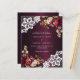 Pour une mariage élégante et romantique. Un dégradé bordeaux décoré de fleurs bordeaux, roses et pêche, de roses et de dentelle. Personnalisez et ajoutez vos noms et détails. 1 feuille = 1 invite imprimé bord à bord.