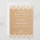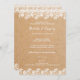 Découvrez notre Faire-part de mariage en dentelle florale Kraft Vintage, un mélange intemporel de charme rustique et d'élégance raffinée. Dentelle florale blanche délicate danse gracieusement sur fond brun kraft chaud, dégageant un charme vintage. Une formulation personnalisable vous permet d'imprégner votre personnalité unique dans chaque détail. Imprimée à la perfection sur un carton Matte de haute qualité, cette invitation promet une sensation naturelle avec une finition veloutée mate. Mesurant 12,7cm x 17,8cm en orientation portrait, il arrive avec des enveloppes blanches et nettes, prêtes à enchanter vos invités. Faisant partie d'une collection de coordination, cette invitation donne le ton à un mariage baigné de nostalgie et de raffinement. Idéal pour les couples à la recherche d'un cadre vintage, rustique ou sans effort. Faites de votre journée spéciale un moment inoubliable avec notre Faire-part de mariage de dentelle florale Kraft Vintage.