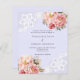Pour une mariage élégante et romantique. Arrière - plan de couleur lavande décorée de fleurs d'or rose et rose, de roses et de dentelle. Personnalisez et ajoutez vos noms et détails. 1 feuille = 1 invite imprimé bord à bord.