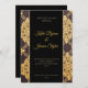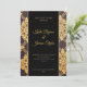 Black and Gold Floral Design Faire-part de mariage - Le noir et l'or sont-ils vos couleurs mariages? Vous cherchez un mélange de plaisir, de style et de sophistication pour votre papeterie mariage or et noir? Regarde cette faire-part de mariage. Le centre de l'invitation a un arrière - plan noir avec des lettres dorées. Les côtés de l'invitation sont noirs avec un design floral or pâle. Amusant, moderne et attrayant !