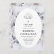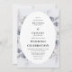 Invitation de mariage d'hiver botanique. Le design présente un ovale blanc encadré de fleurs d'aquarelle botanique et de feuillage festif. Les nuances de gris, de bues et de marron donnent une ambiance hivernale et le modèle simple est facile à customiser.