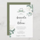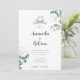 Célébrez votre mariage avec cet élégant faire-part de mariage moderne d'eucalyptus, magnifiquement conçu avec des feuilles d'aquarelle délicats et une calligraphie gracieuse. Les tons verts doux et la disposition botanique offrent une esthétique fraîche et sophistiquée, idéale pour les mariages contemporains avec un thème naturel ou de jardin. Personnalisez-le avec vos noms, date, lieu et plus encore. Idéal pour les couples qui souhaitent allier minimalisme moderne et verdure romantique.