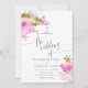 Aquarelle feuillage tropical avec typographie manuscrite avec un flamant rose et des feuilles en feuille rose et or conçus pour être rapidement et facilement customisés aux détails de votre événement.