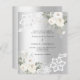 Pour une mariage élégante et romantique. Un faux arrière - plan argenté décoré de fleurs blanches, de roses et de dentelle blanche. Personnalisez et ajoutez vos noms et détails. 1 feuille = 1 invite imprimé bord à bord.