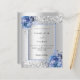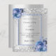 Faux arrière - plan de style argent décoré de roses bleus, fleurs et confettis. Personnalisez et ajoutez vos noms et les détails du mariage. Lettres noires. 1 feuille = 1 invite imprimé bord à bord.