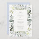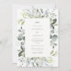 Ce design présente des fleurs bleues poussiéreuses et des feuilles d'eucalyptus dans les tons verts.