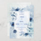 Cette décoration est ornée d'une élégante cheminée à fleurs aquarelle décorée dans des tons bleus, dont des fleurs d'eucalyptus rose. Un arrangement de fleurs assorti a été ajouté à l'arrière.