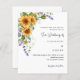 Un arrière - plan blanc décoré de tournesols aquarellés et de fleurs de lavande. Personnalisez et vos noms et détails. 1 feuille = 1 invite imprimé bord à bord.